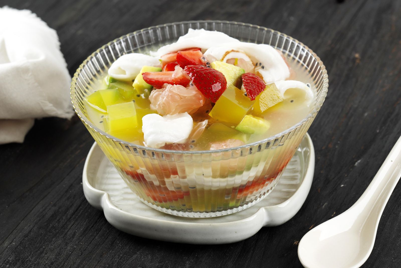 Campurkan buah-buahan segar seperti semangka, nangka, melon, dan apel ke dalam wadah bersama dengan susu low fat dan es batu. Tambahkan sedikit madu atau gula aren jika ingin lebih manis. Es buah segar ini kaya akan serat, vitamin, dan mineral yang dibutuhkan tubuh.