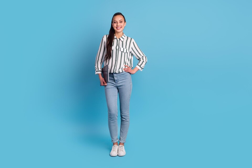 High-waisted jeans, atau jeans dengan potongan pinggang tinggi, adalah pilihan terbaik untuk menciptakan tampilan tubuh yang lebih tinggi. Potongan jeans ini mengangkat garis pinggang lebih tinggi dari biasanya, menciptakan ilusi kaki yang lebih panjang dan mengubah proporsi tubuh secara keseluruhan. Padukan high-waisted jeans dengan atasan yang dimasukkan untuk menonjolkan efek memanjangkan.