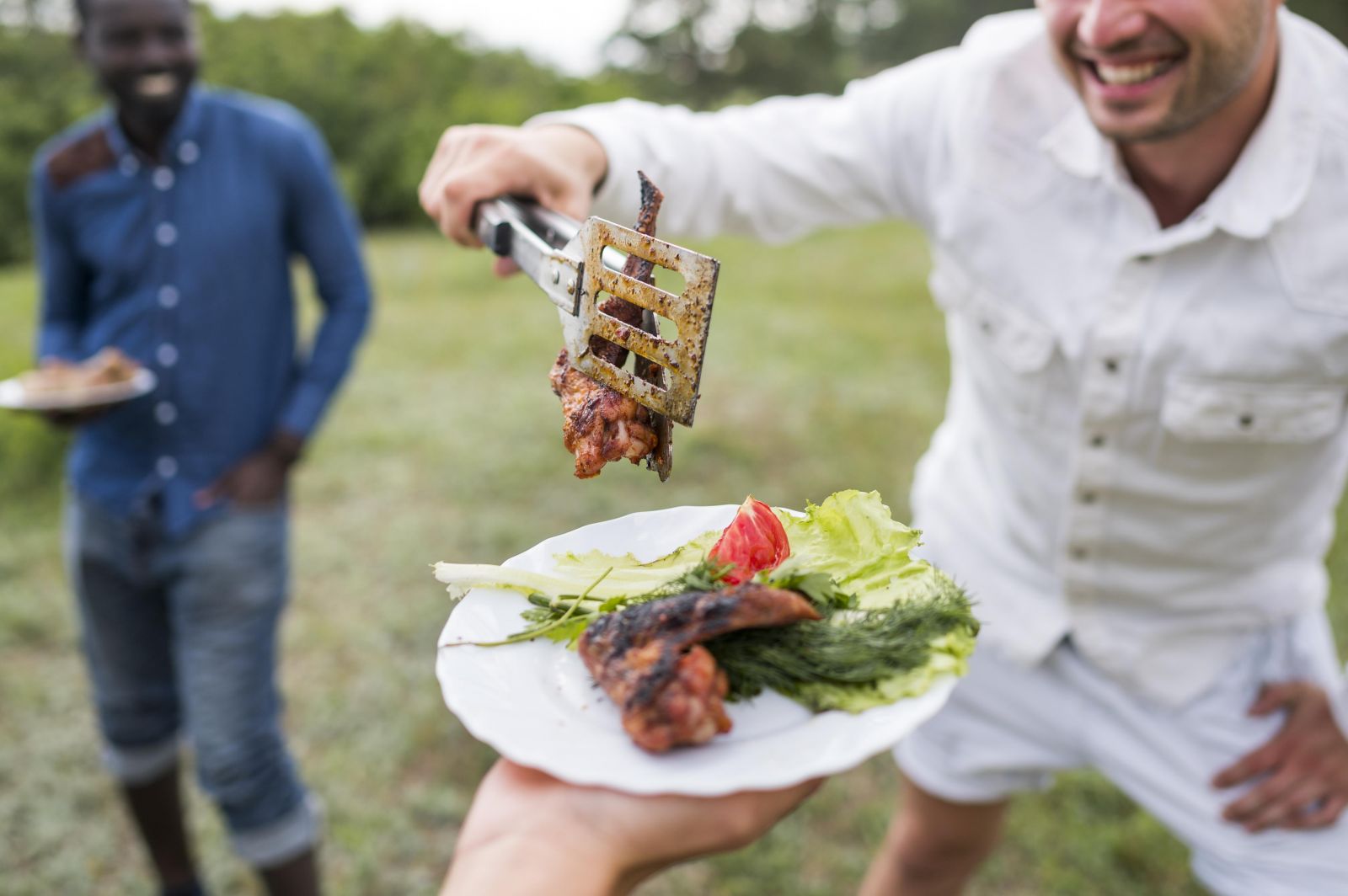 3. Bagilah satu piring menjadi 4 bagian, yaitu: ⅔ dari ½ bagian piring untuk makanan pokok dengan ⅓ sisanya untuk lauk-pauk; kemudian ⅔ dari ½ bagian piring lainnya untuk sayur-sayuran dengan ⅓ sisanya untuk buah-buahan. Melalui cara ini (Isi Piringku), kamu tetap dapat menikmati lezatnya daging atau ayam bakar.